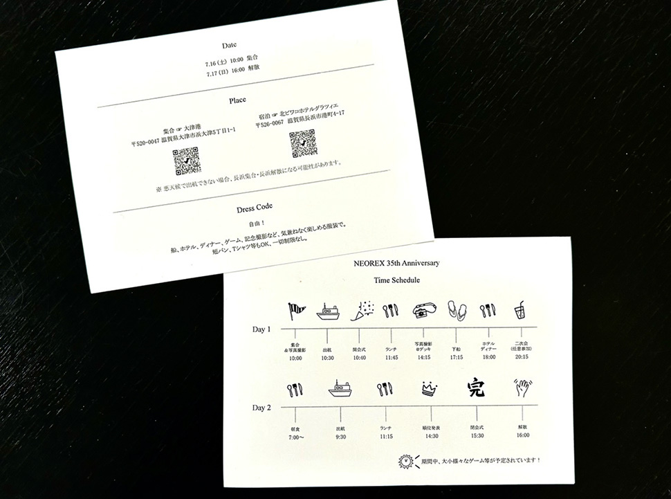 イベントの概要やスケジュールを確認することができるインビテーションカードもあります。