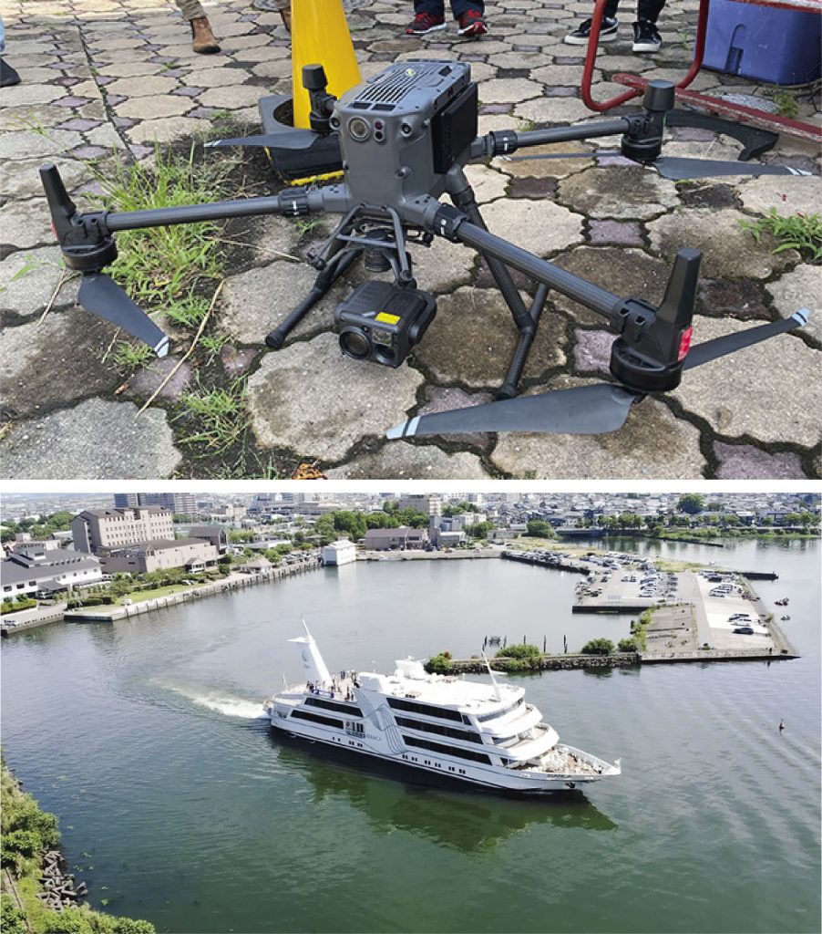出港の様子を、ドローンで撮影していただきました。