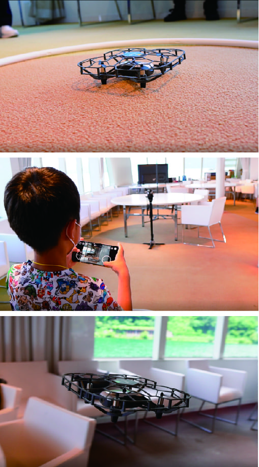 イベントのために用意した「トイドローン」。ほとんどの人が初体験の中、チーム戦でリレー飛行し、タイムを競います。