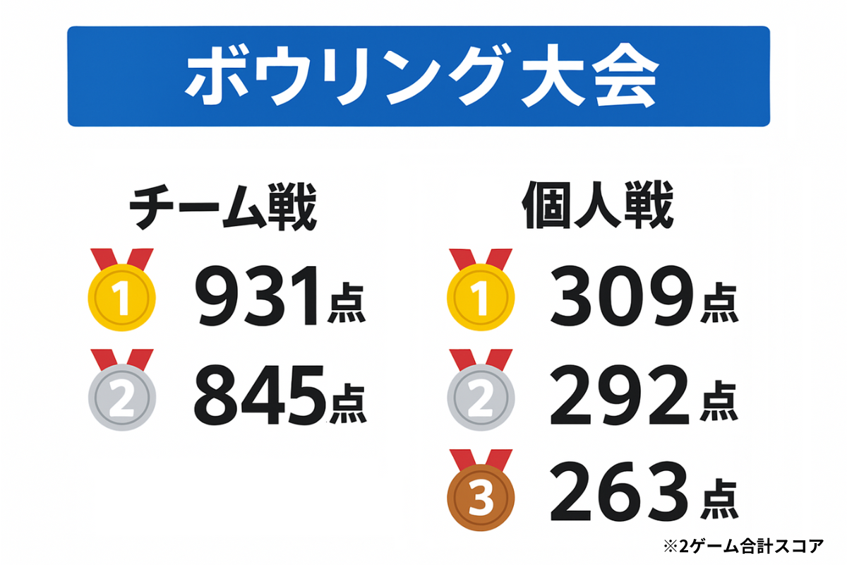 各レーンでは、スペアやストライクが決まるたびにハイタッチが飛び交い、自然と笑顔が広がりました。