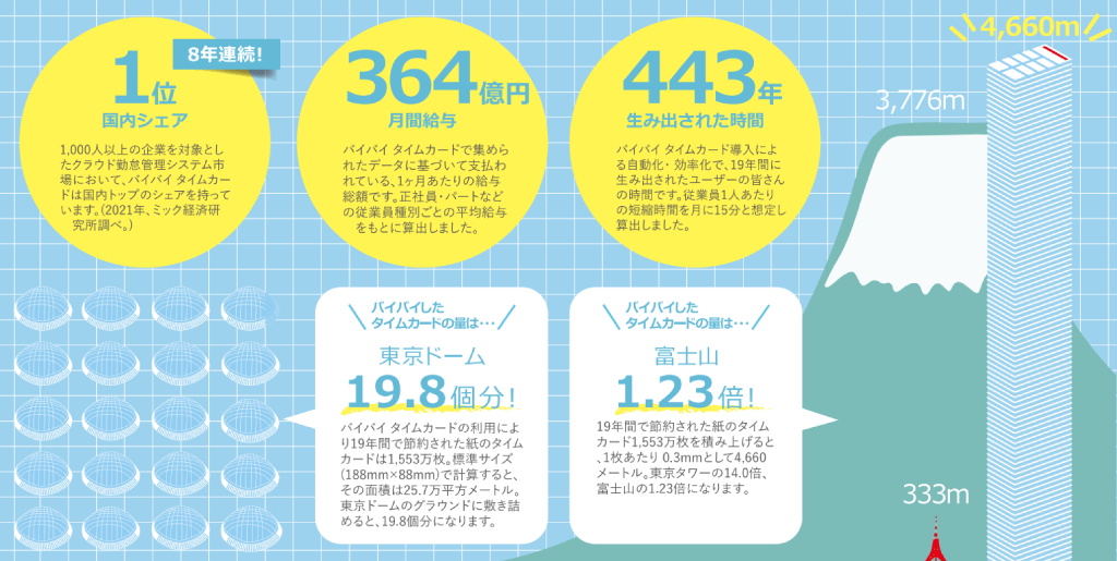 データで見るキンタイミライ(旧バイバイ タイムカード)の実績