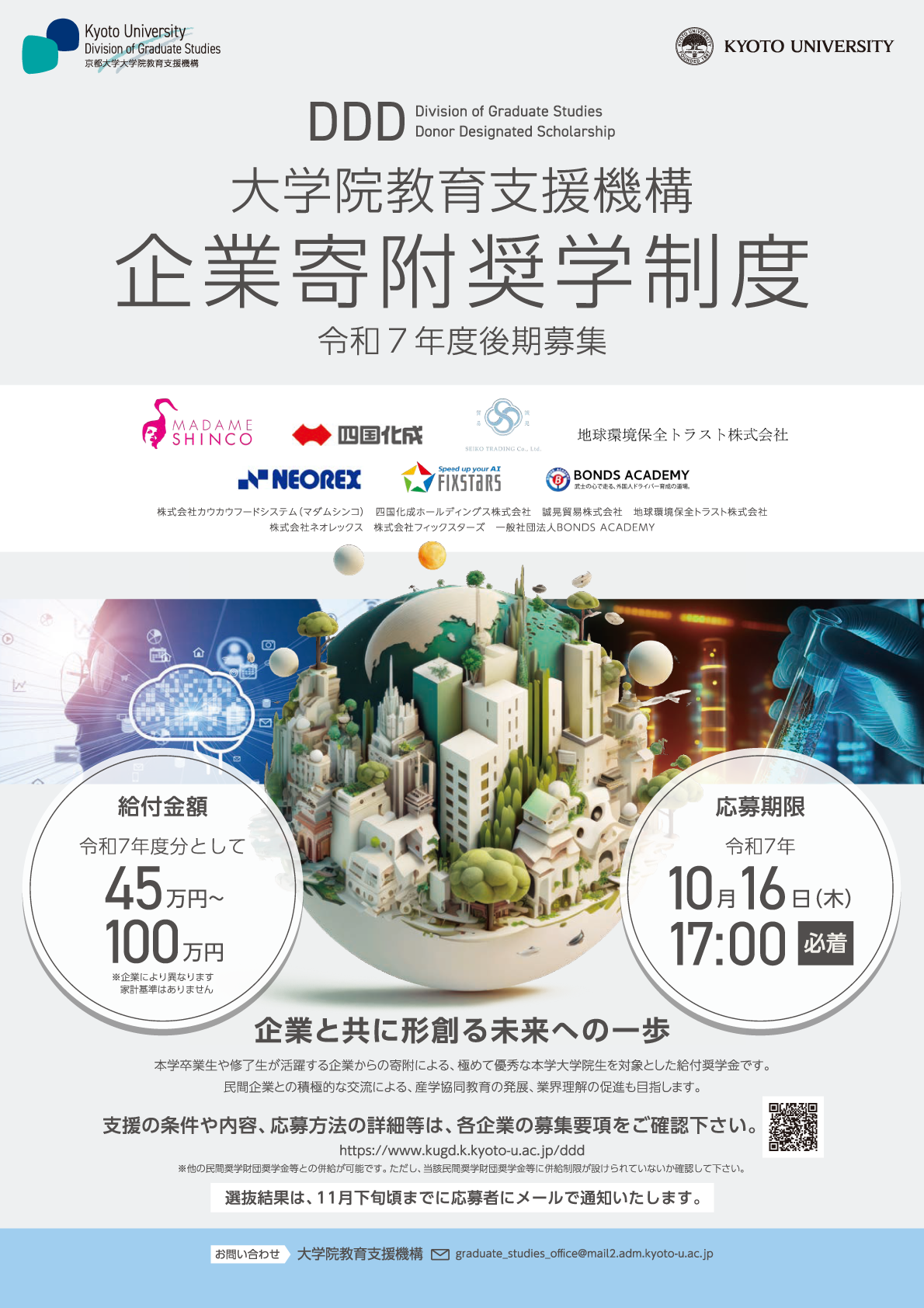 京都大学「大学院教育支援機構 企業寄附奨学制度」に参加